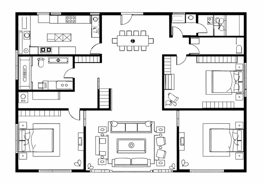 保障居住私密性与舒适度。大面积公共空间结合独立套房卧室,满足多样化家庭生活需求。